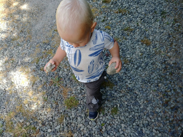 On Thursday evening we went to my parents house for dinner. Matt was working on this compactor and William was so eager to be out there helping him. See the two screwdrivers he is holding?