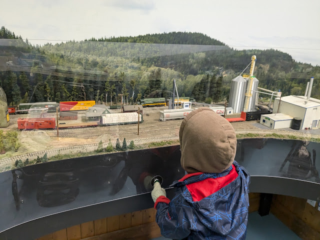 While the rest of the family was abroad, James, Clara, and I went to the railway museum here in Prince George. We haven't been before but James is so fascinated with his 'trainy' friends so I knew this would be a good way to spend an afternoon. Unfortunately the day we went was overcast a bit chilly, but we had positive temperatures and dry skies so I can't complain.