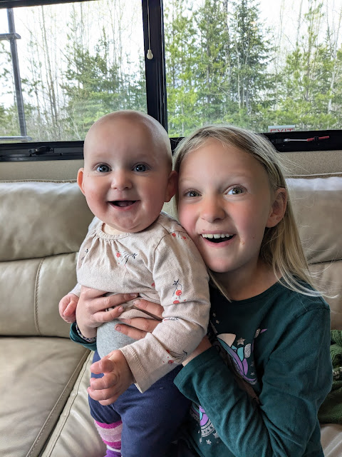 The kids gathered to watch Will cut the grass in the front yard. Looks like it may not have provided full time entertainment for Delilah though, as she does have a book in hand still.